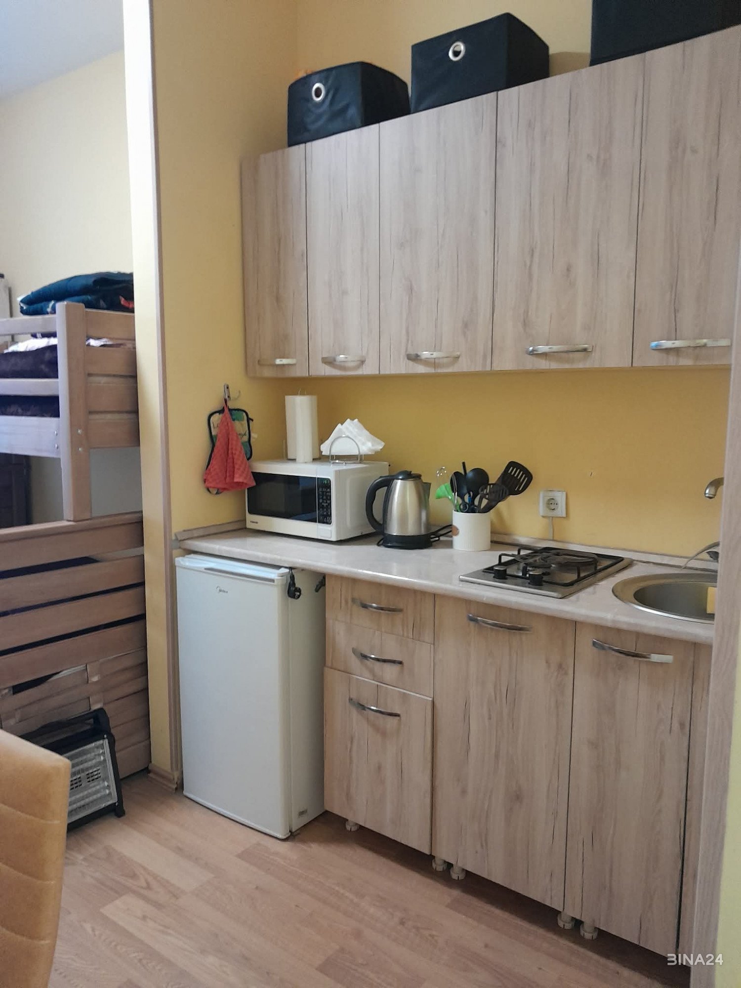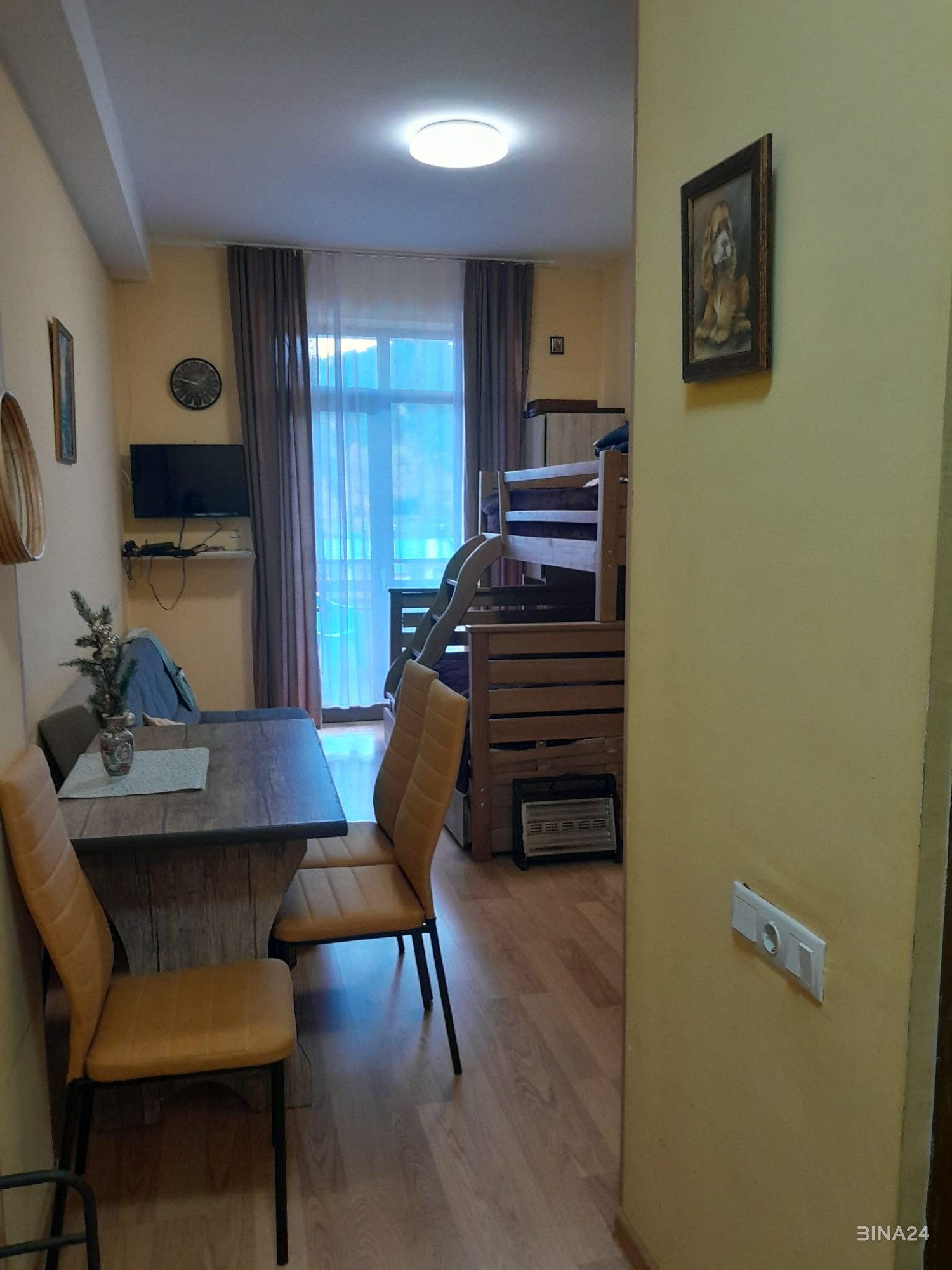 ქირავდება 25 კვ. მ. ერთოთახიანი კეთილმოწყობილი ბინა ბაკურიანში, (წაქაძის 14, „ბაკურიანი სითი“) 3+1 პერსონაზე. ბინაში არის ყველა აუცილებელი ტექნიკა, ჭურჭელი, wifi, ტელევიზია. კომპლექსის ეზოში არის საბავშვო მოედანი. ფასი იცვლება დღეების რაოდენობის და სეზონების მიხედვით