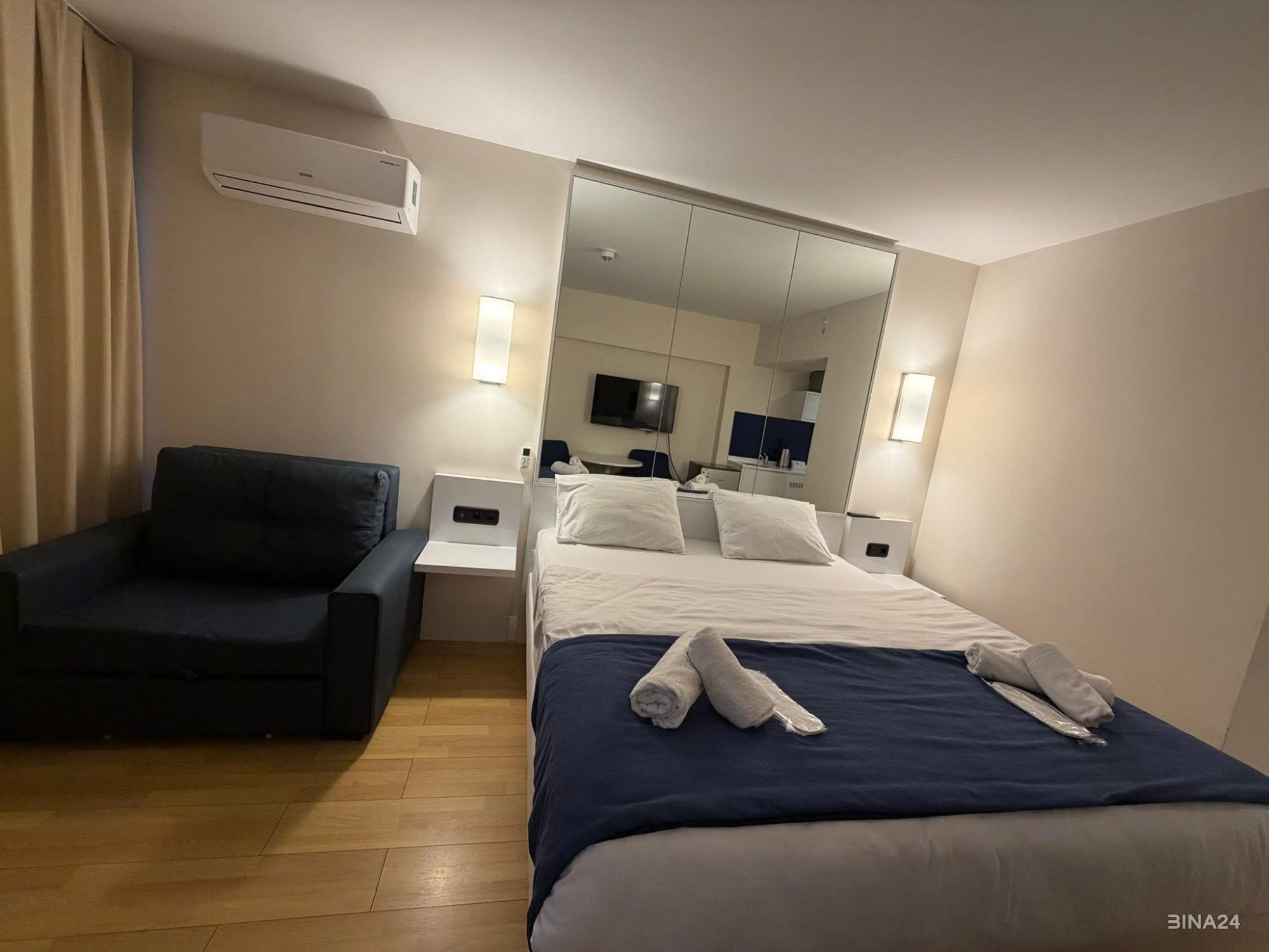 🛋️ დამატებით: გასაშლელი სავარძლი ორ ან სამ ადამიანზე. ორი პატარა მაცივარი ცივი სასმელებისთვის