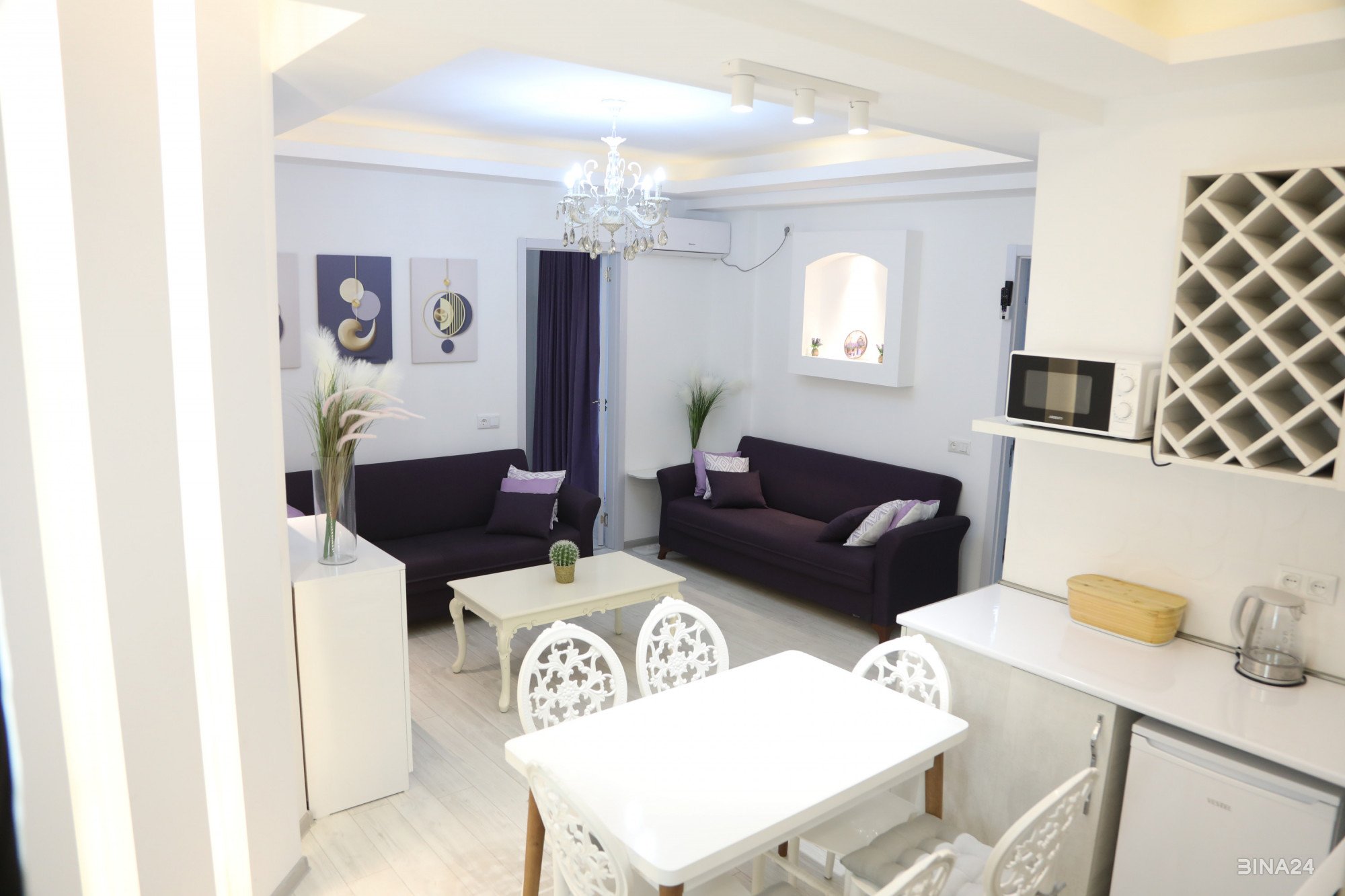 აბსოლიტურად უახლესი ავეჯი და თეთრეული. გამოირჩევა განსაკუთრებით სისუფთავით. ქალაქის ცენტრში კოტონთან , კონი საქართველოსთან . ცენტრალური გათბობა, 3 კონდიციონერი, 3 ტელევიზორი.100%კოტონის თეთრეული და სისუფთავე.