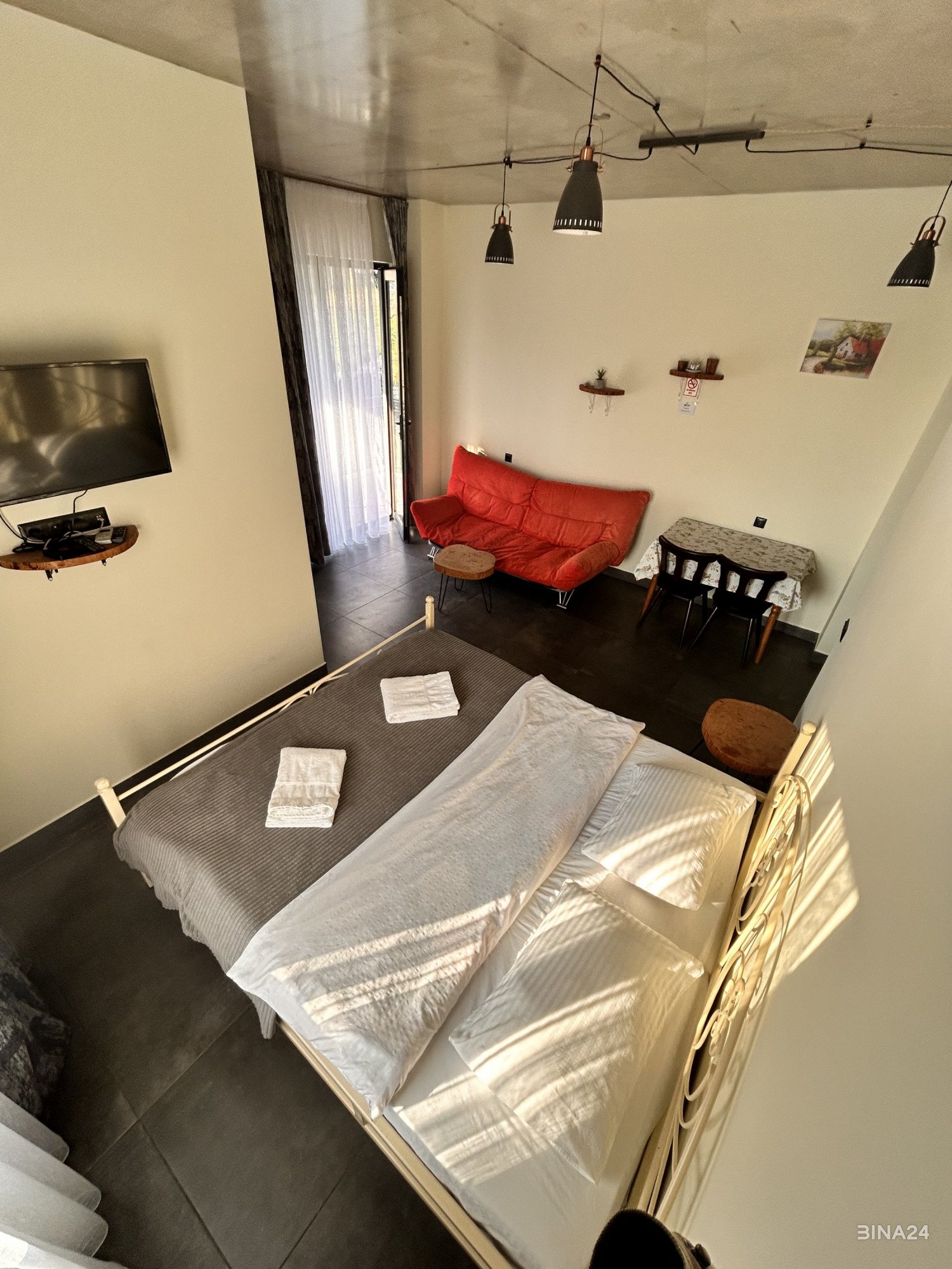 ქირავდება დღიურად ქუთაისში ახალ აშენებული ბინაში, ახალი რემონტითა და ავეჯით “ეკო გარედენი”ს აპარტამენტი. ქალაქის ხმაურიდან მოშორებით და ამავდროულად ქალაქთან ძალიან ახლოს(ყინულის მოედნიდან 500 მეტრში) განსხვავებული გარემო და ინტერიერი, მყუდრო, ნათელი, მოწესრიგებული ოთახები, სუფთა ჰაერი, სიმშვიდე, სიწყნარე და კომფორტი თქვენთვის. აპარტამენტში დაგხვდებათ სუფთა თეთრეული და პირსახოცები. აპარტამენტს აქვს აივანი და ეზო. უფასო თავისუფალი საპარკინგე ადგილები.