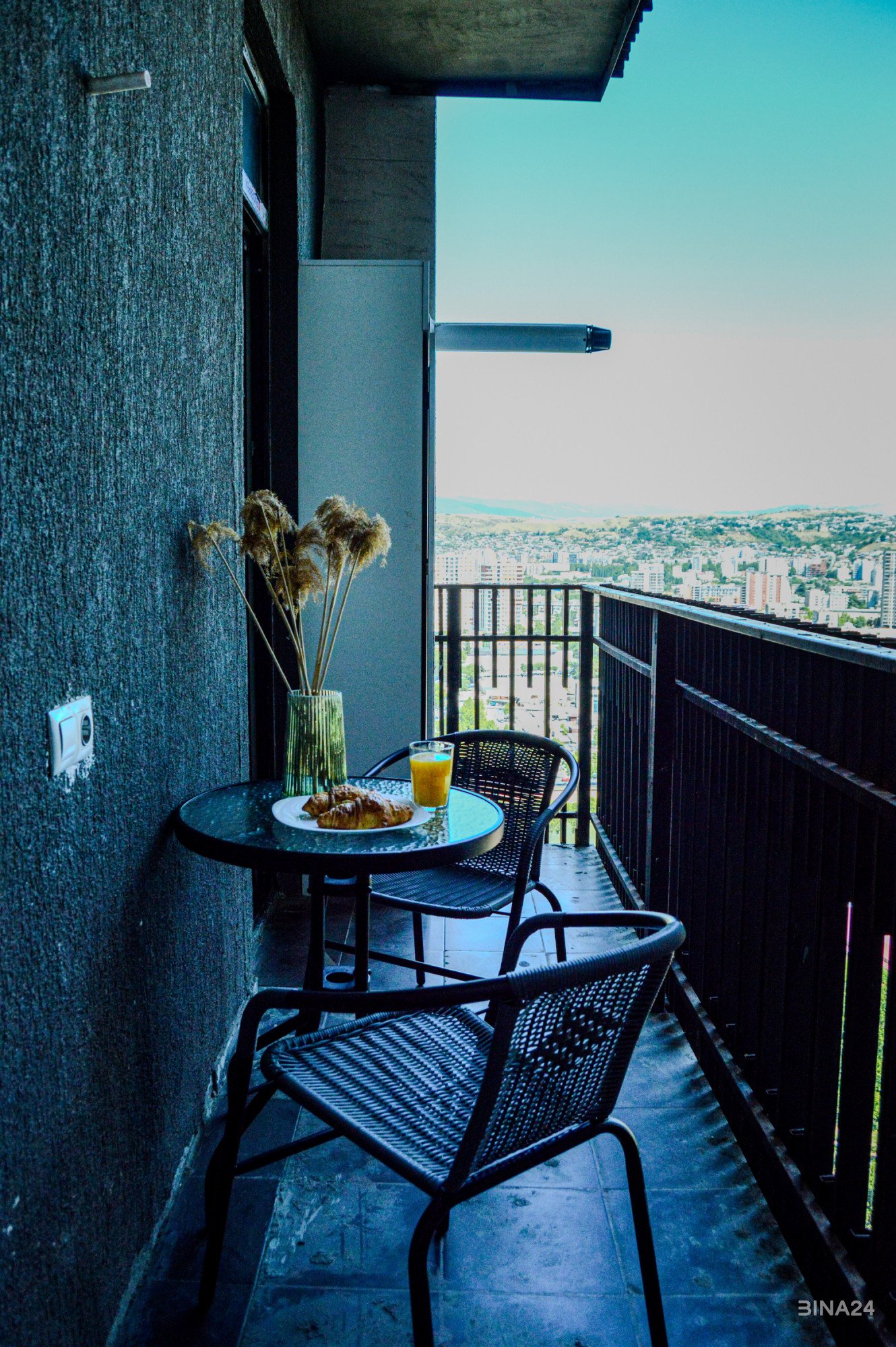 ფართო აივანი, საიდანაც იშლება უზარმაზარი და ულამაზესი ხედი ქალაქზე;
