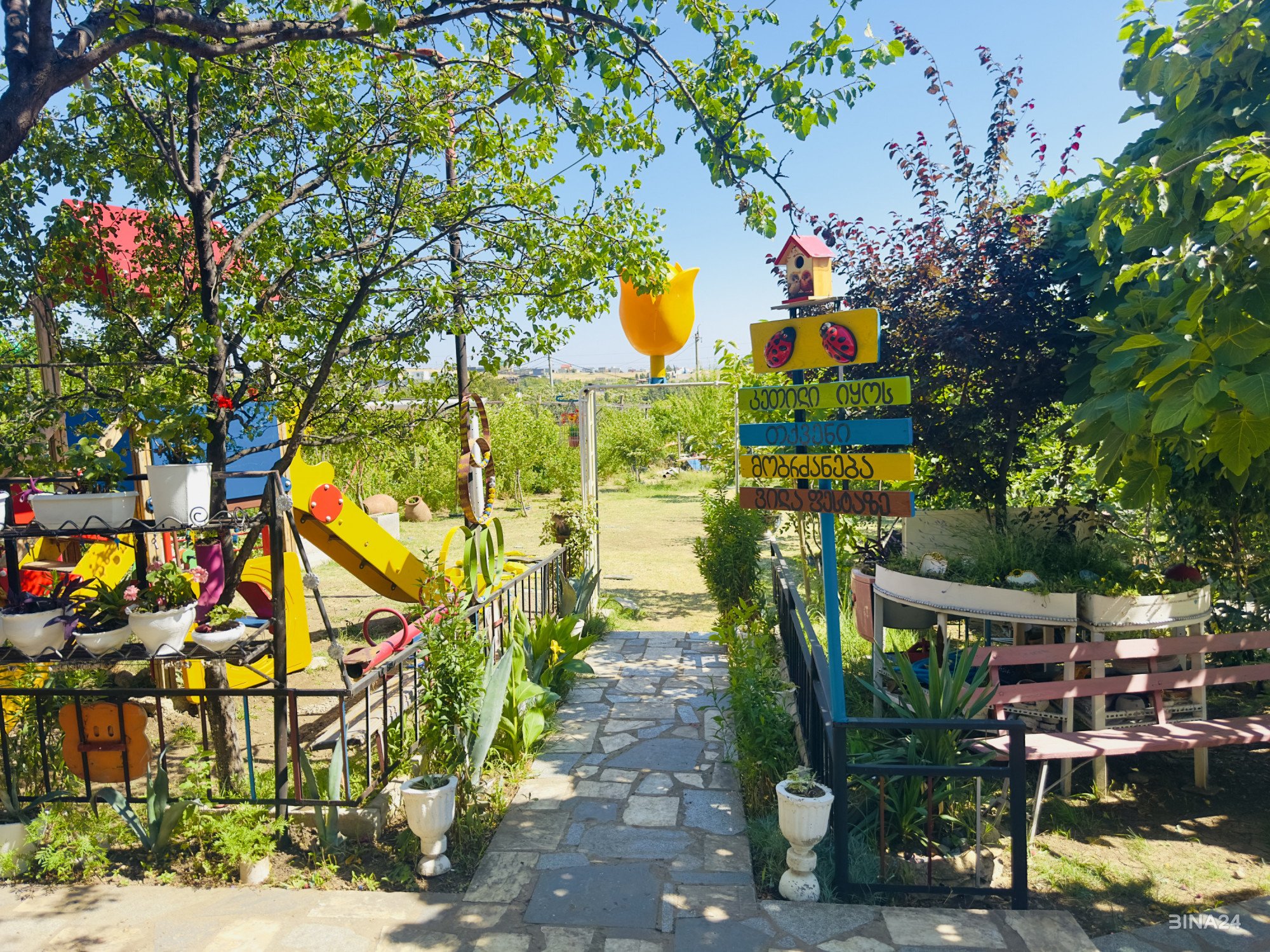 აგარაკზე დაგხვდებათ ყველა საჭირო ინვენტარი, დიდი ლამაზი ეზო, არის შიდა და გარე გადახურული დასასხდომი სივრცე, რუკაზე იძებნება როგორც ვილა ფესტა